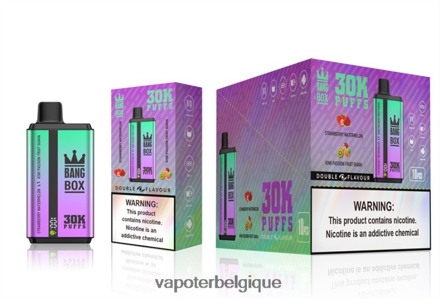 Bang Box 30 000 bouffées double saveurs TTX60470 – Vape Grossiste fraise pastèque & kiwi fruit de la passion goyave