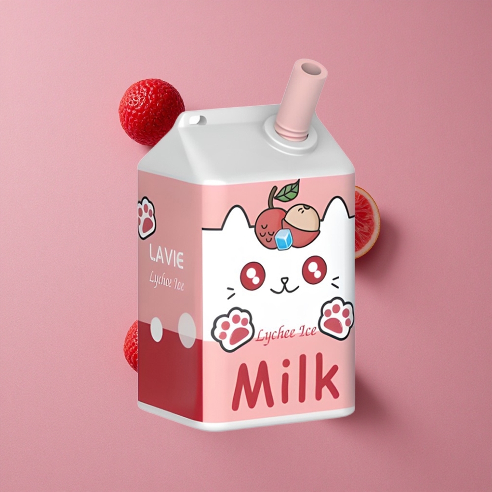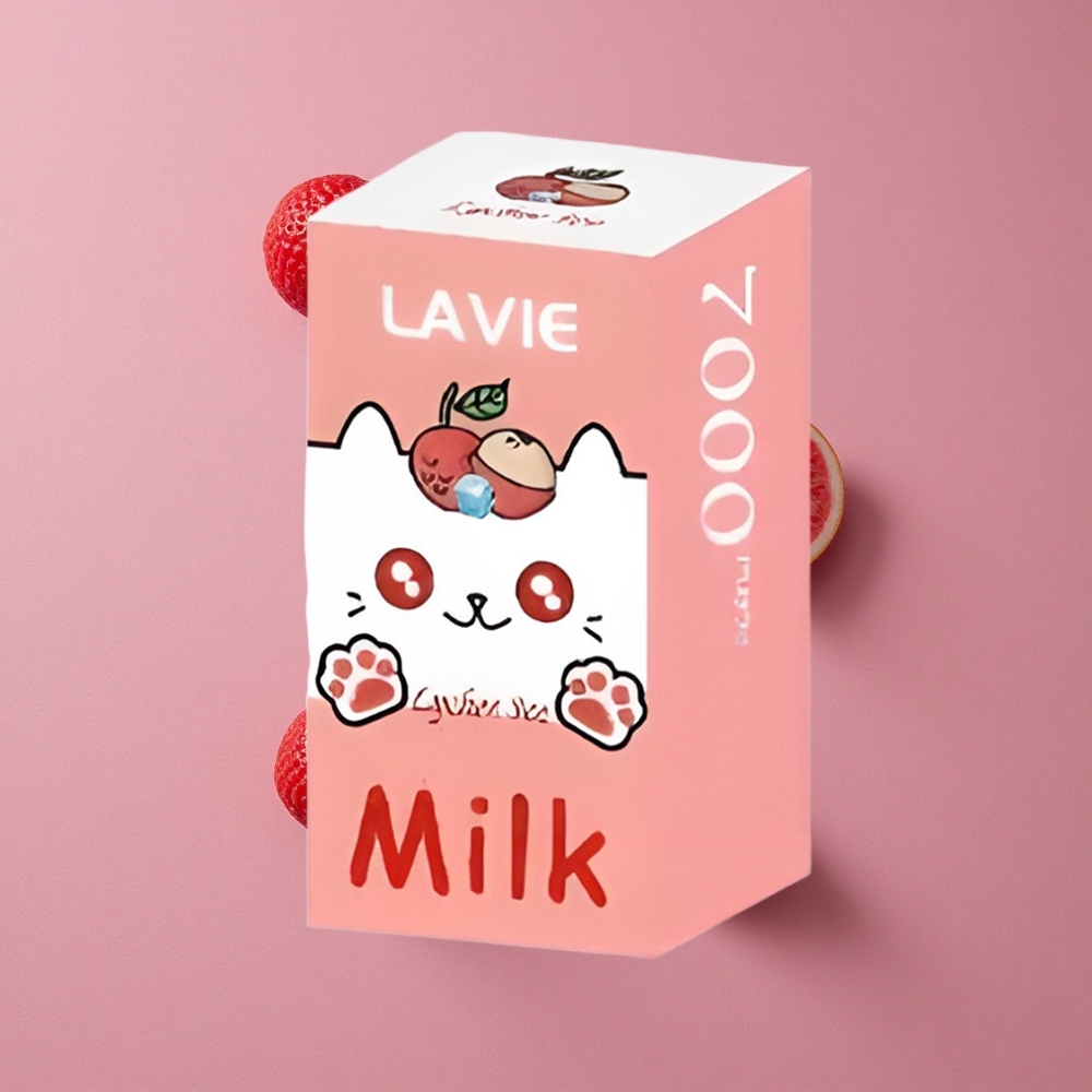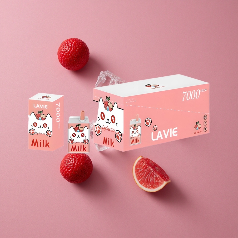 LAVIE Milk 7000 Puffs Vape Jetable Litchi Glacé avec Capacité de E-liquide: 16ML et Port de Chargement: Type C Rechargeable