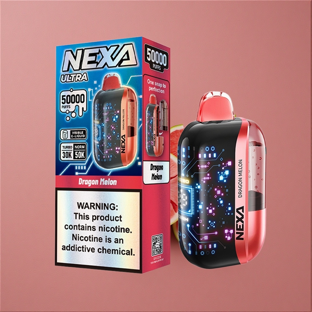 NEXA Ultra 50K Dragon Melon Vape Jetable 50000 Puffs 20ml Préremplie Écran Courbe 3D