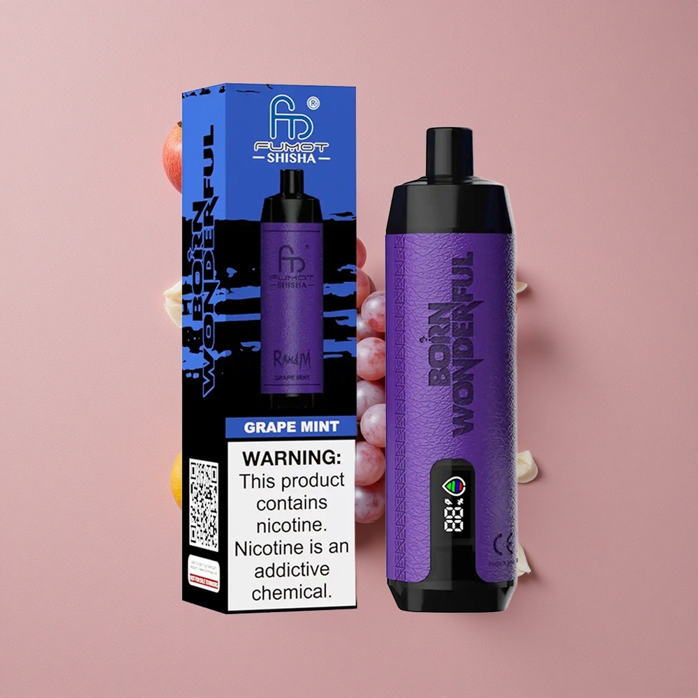 RandM Fumot Shisha 10000 Puffs Vape Jetable Raisin Menthe avec Indicateur LED et Batterie 850 mAh