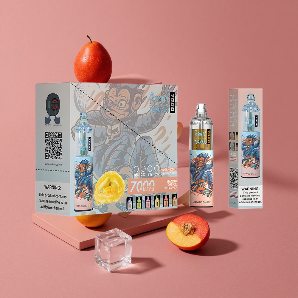 RandM Fumot Tornado 7000 Puffs Mangue Glacée 14 ML E-liquide Air-Adjustable