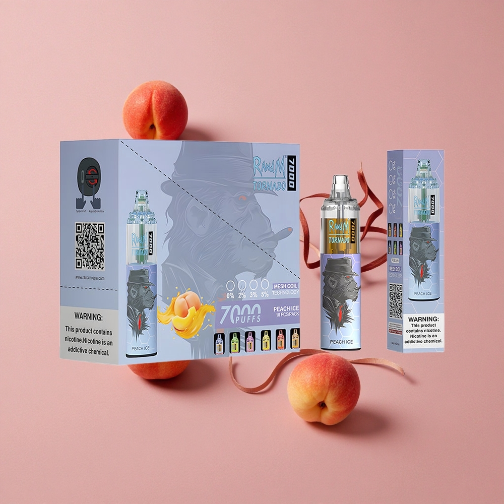 RandM Fumot Tornado 7000 Puffs Pêche Glacée 14 ML E-liquide et Batterie 850 MAH