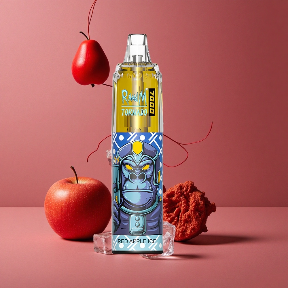 RandM Fumot Tornado 7000 Puffs Vape Disposable Pomme Rouge Glace avec 14 ML E-liquide et Air-Adjustable