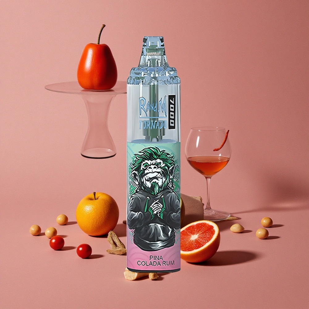 RandM Fumot Tornado 7000 Puffs Vape Jetable Pina Colada Rhum 14 ML E-Liquide et Air-Adjustable