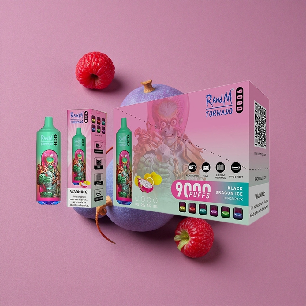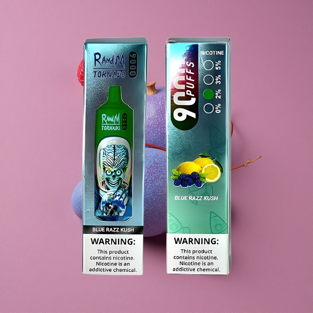 RandM Fumot Tornado 9000 Puffs Blue Razz Kush Rechargeable 850 mAh Affichage RGB