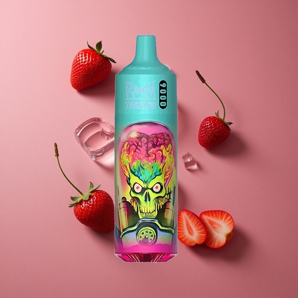 RandM Fumot Tornado 9000 Puffs Fraise Framboise Cerise Glace – 18 mL & Affichage RGB Élégant