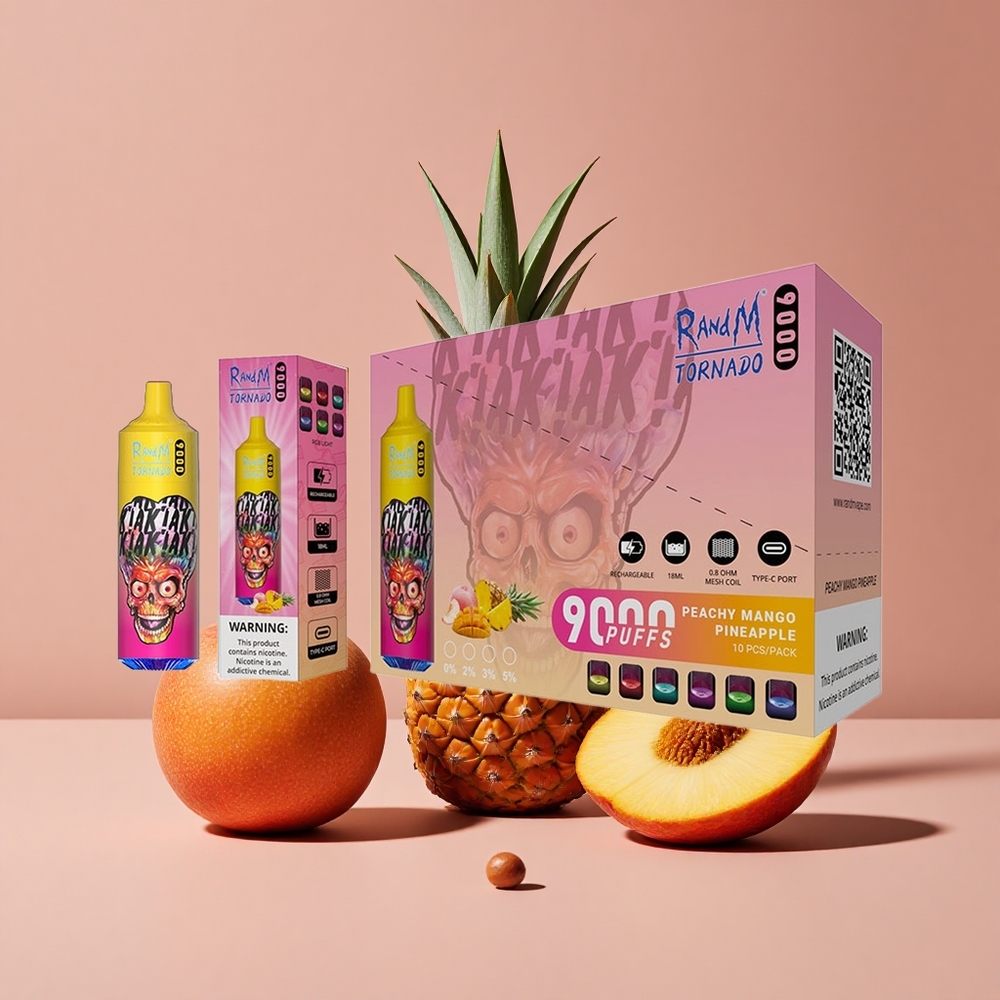 RandM Fumot Tornado 9000 Puffs Pêche Mangue Ananas avec Affichage RGB et Bobine Mesh