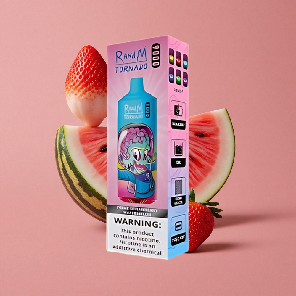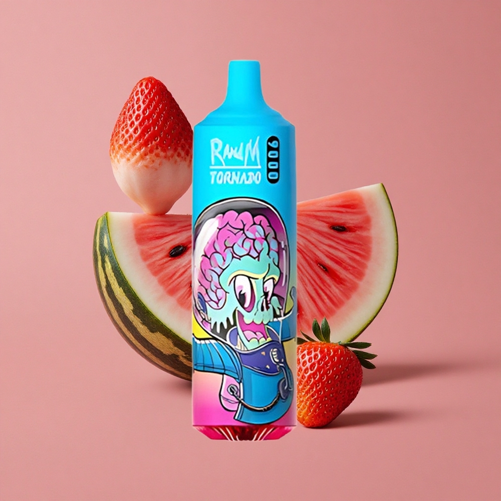 RandM Fumot Tornado 9000 Puffs Prime Fraise Pastèque avec Affichage RGB Élégant et Bobine Mesh